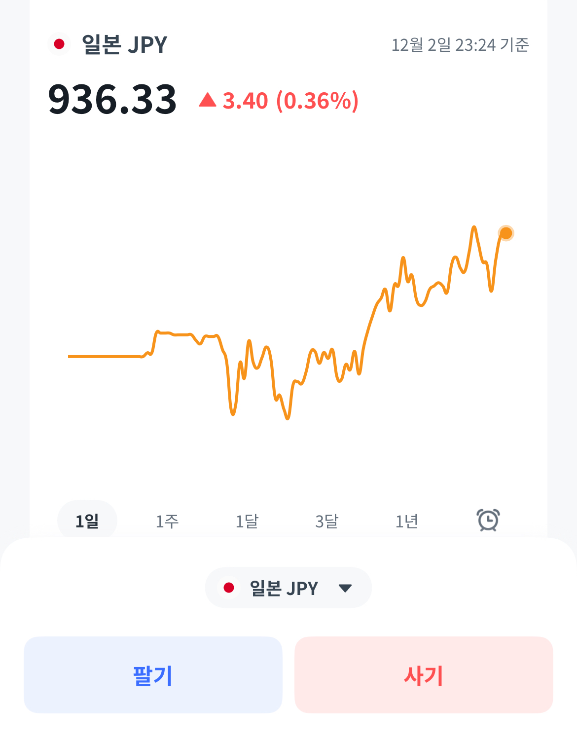 지난 주에 토스에서 890원대로 엔화를 샀었던 것 같은데 정말 많이 올랐습니다. 이 정도면 환테크 혹은